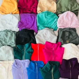 Articles inclus : Leggings, soutiens-gorge de sport, crop tops, débardeurs, sweats à capuche, pantalons de jogging, shorts, ensembles assortis, accessoires (sacs, chapeaux, chaussettes, etc.)